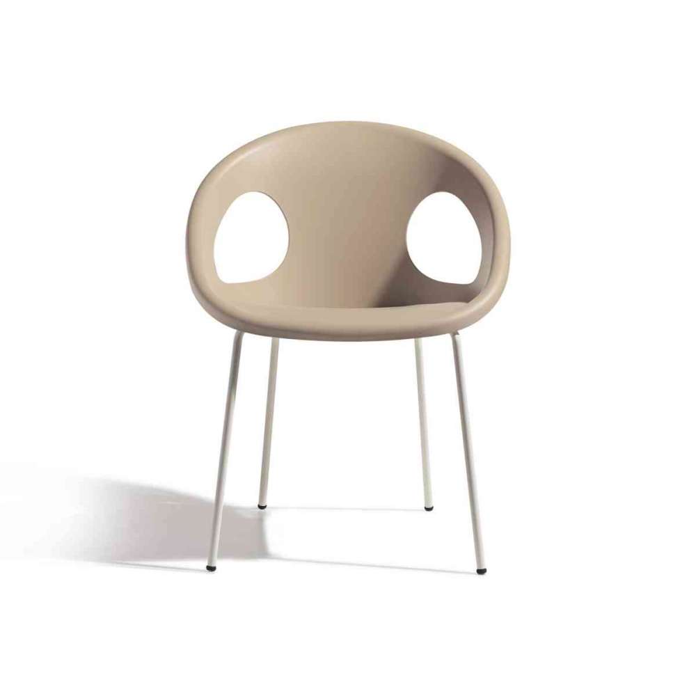 Drop można ustawiać jeden na drugim i jest wykonany z technopolimeru, z 4 nogami, chromowanymi lub malowanymi proszkowo poliestrem, dla każdego, kto nie chce rezygnować z designu w meblach ogrodowych.