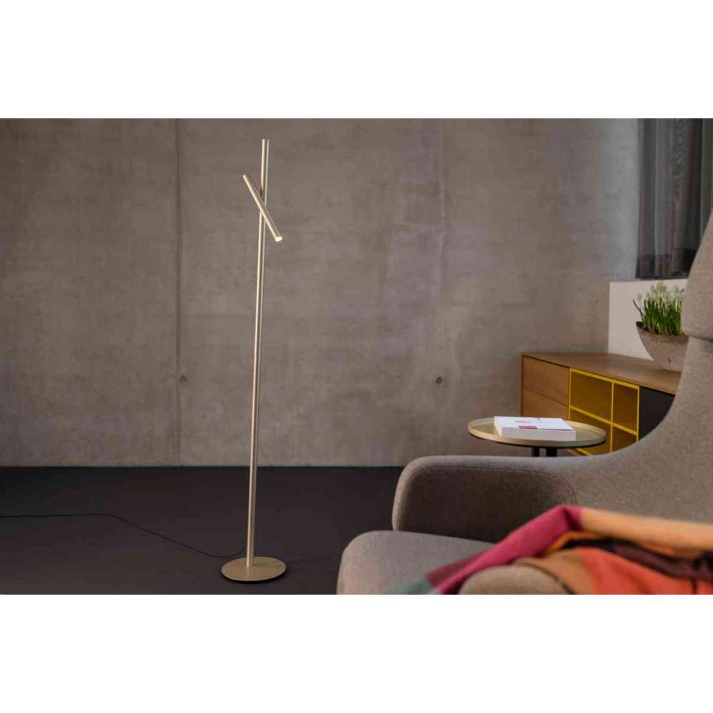 FINO Floor to delikatna, dowolnie regulowana lampa podłogowa o eleganckim wyglądzie powierzchni: obudowa ze szczotkowanego aluminium, anodowana w kolorze brązu, opcjonalnie w kolorze czarnym lub szampańskim złocie. Z wtyczką zasilającą i przełącznikiem przyciskowym na głowicy latarki.
