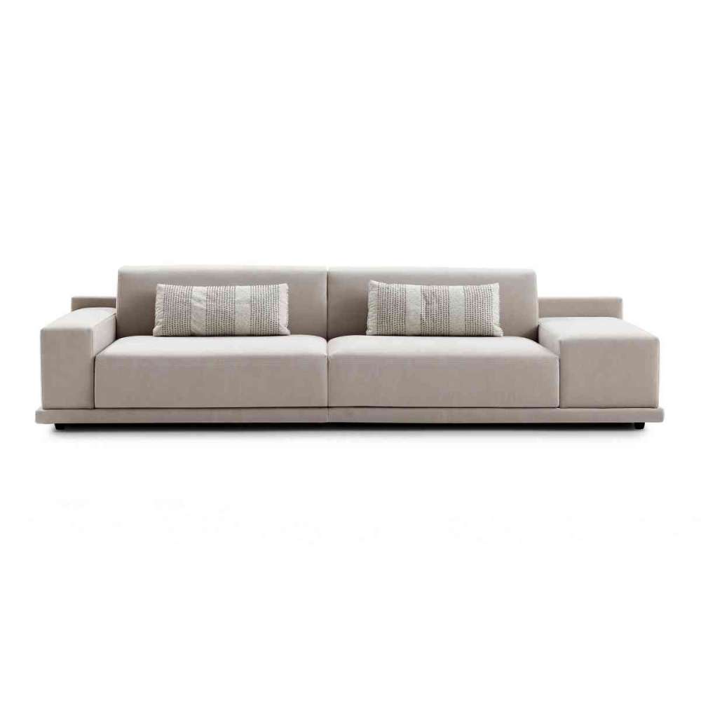 moduły końcowe oraz szezlongi o różnych formatach. Nie wspominając już o dodatkach: pufy biegnące luźno i wkomponowane w kompozycję czy połączenie z kilkoma tapicerowanymi stolikami w celu rozwiązania dwóch zastosowań w jednym. Do całej tej modułowości dodajemy opcję: podwójną wysokość poduszek oparcia - 74 i 84 centymetry. Poduszki wykonane są ze specjalnej kompozycji poliuretanu, na wierzch którego dodaje się 6 cm. głęboka warstwa pianki memory. Misja wykonana!