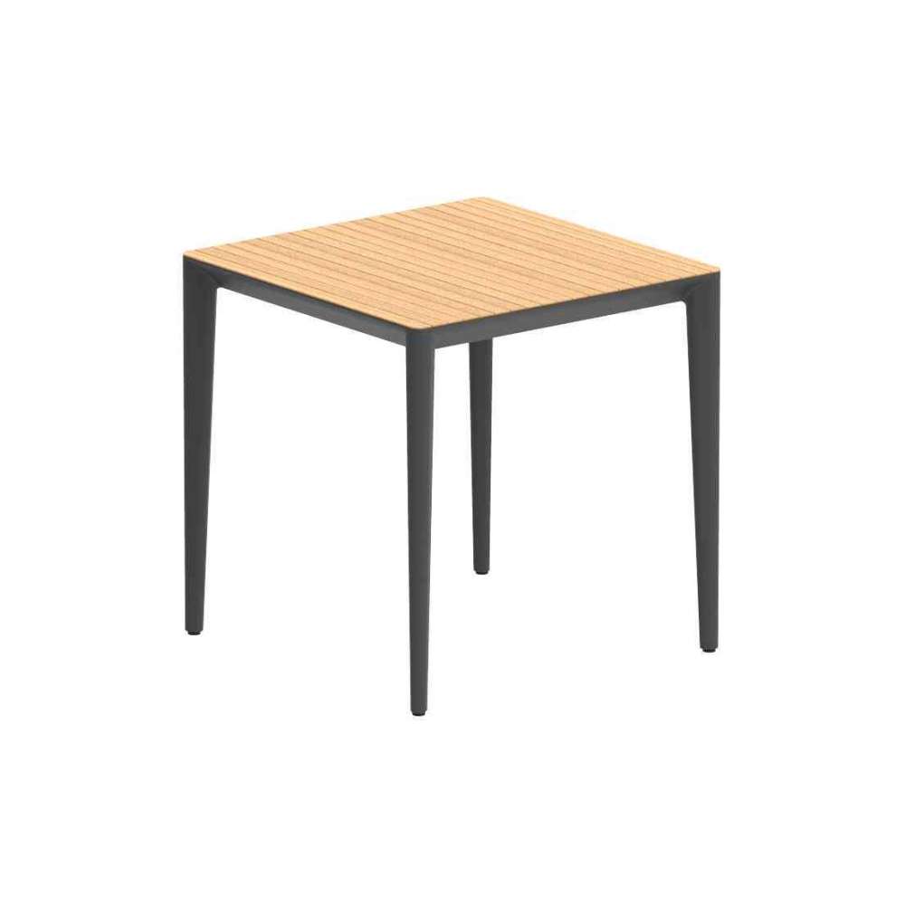 Wymiary (szer. x głęb. x wys.): 75x75x75cm - Materiał: powlekana aluminiowa czarna rama + blat z drewna tekowego