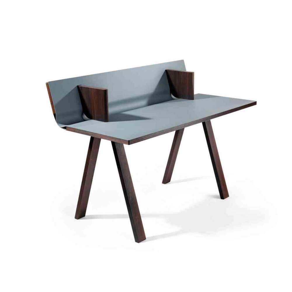 Ovolo jest przeznaczone na chwile natchnionej wyobraźni i trzaskającej kreatywności. Jest idealnym pomocnikiem, ponieważ jego wyrafinowane detale i funkcjonalność sprawiają, że wszystko, czego potrzebujesz, jest w zasięgu ręki. Blat biurka płynnie przesuwa się do tyłu, a następnie opada, po czym odchyla się w górę, aby złapać luźne przedmioty, takie jak długopisy lub kable. Oprzyj iPada o tablicę, która ma również obszar magnetyczny. Dwie ścianki działowe z litego drewna w kolorze dymionego dębu nie tylko wspaniale prezentują się na tle kontrastowego linoleum na biurku, ale także wprowadzają porządek i pełnią funkcję podpórek do książek. Ovolo to biurko do pracy, planowania lub po prostu do marzeń.