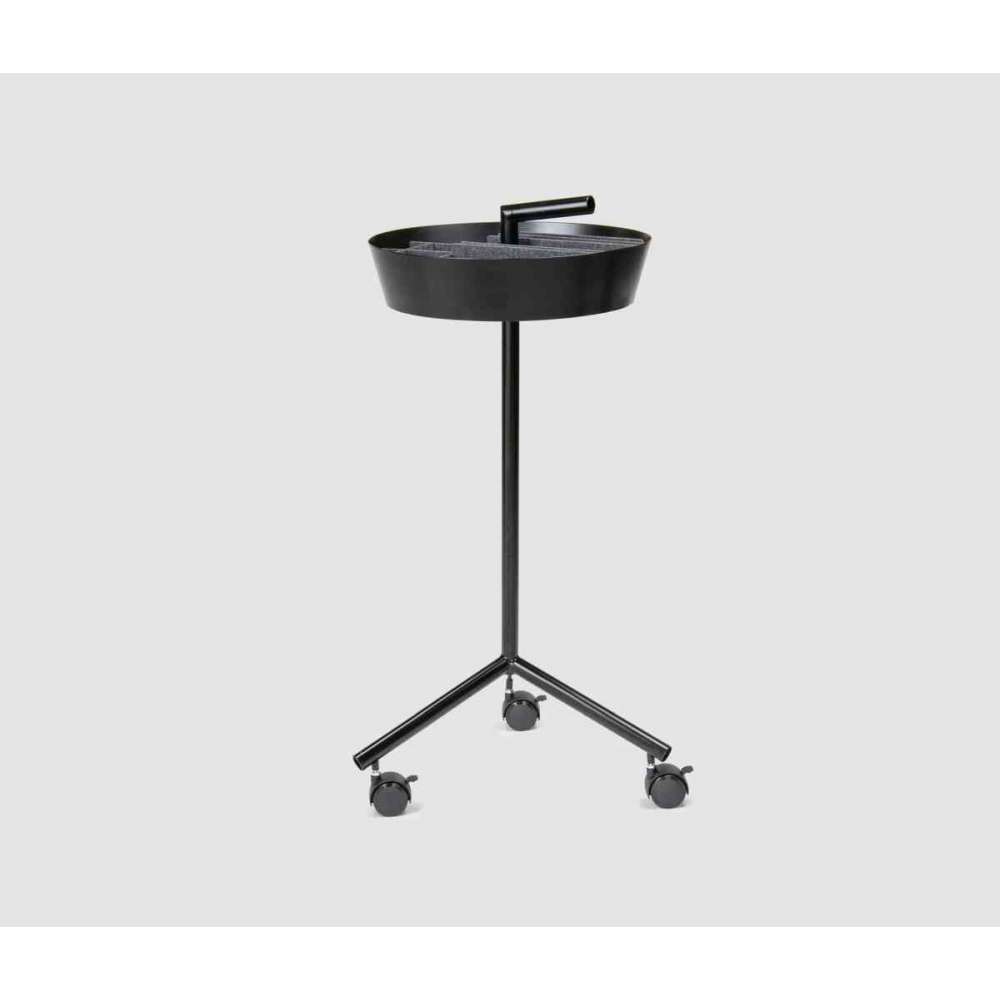 Skrzynka narzędziowa składa się z dwóch elementów: pojemnik jest wyjmowany i można go ustawić na przykład na środku stołu konferencyjnego. Mały stolik, na którym zwykle spoczywa pojemnik na przybory kuchenne, może być również używany samodzielnie jako stolik boczny. Sprytna i mobilna skrzynka narzędziowa jest doskonałym dodatkiem do wszystkich naszych tablic i flipchartów. Wkładki do oddzielania przyborów wykonane są z szarego cętkowanego polaru.