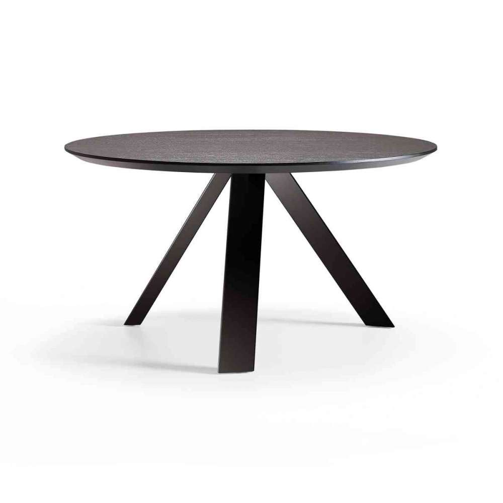 Koncepcja stołu Ki czerpie inspirację z lekkości i elementarnego uroku. Właściwa równowaga między formą a funkcją wyróżnia się zaledwie kilkoma odważnymi liniami, które nadają solidności i wytrzymałości pomalowanej metalowej podstawie ze szprychami.