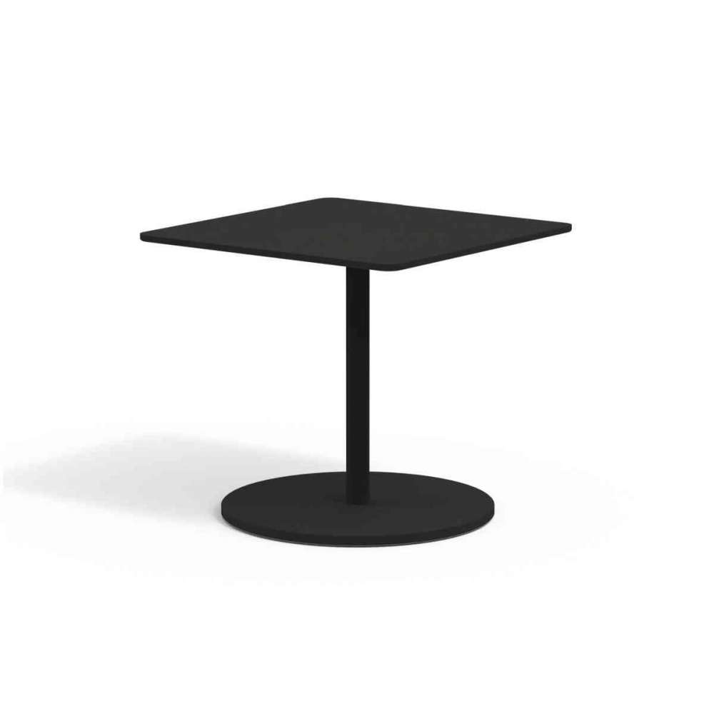 Stół bistro z okrągłym lub kwadratowym blatem, w różnych rozmiarach, lekki i poprzeczny: to jest BUTTON, kolekcja, która ze smakiem i dyskrecją może urządzić zarówno mały wielkomiejski balkon, jak i duży taras restauracji nad morzem.
