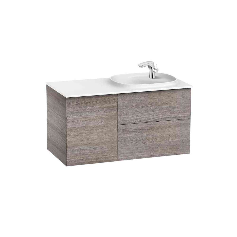 Unik (szafka dolna z dwiema szufladami, jednymi drzwiami i umywalką SURFEX® po lewej/prawej stronie)