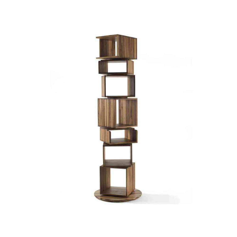 Regał składający się z modułów ułożonych w kolumnę na obrotowej podstawie.