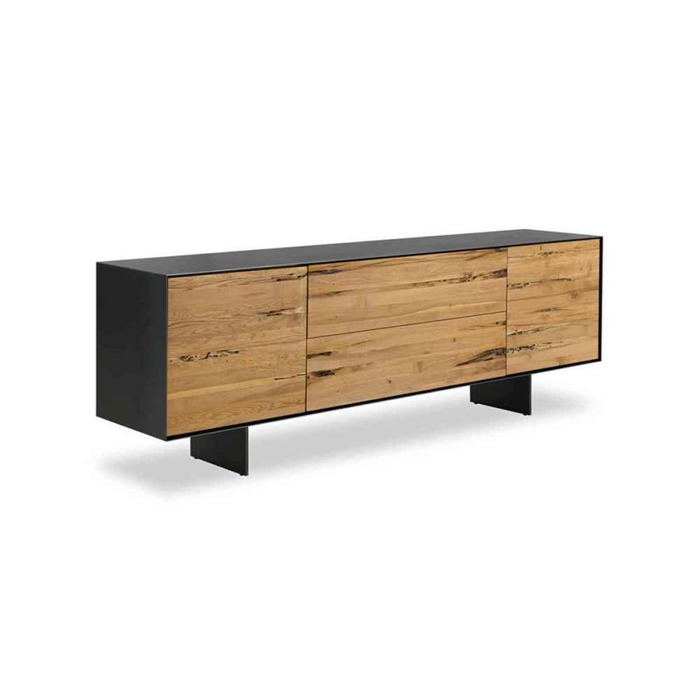 Kredens z litego drewna i płyty stolarskiej, z żelazną lub drewnianą ramą, charakteryzujący się szufladami montowanymi na jaskółczy ogon i drzwiami. Dwie cienkie żelazne nogi podnoszą go z ziemi.