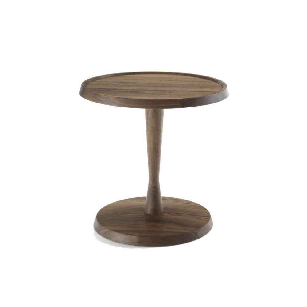Okrągły stolik w całości z litego drewna, charakteryzujący się blatem uzyskanym za pomocą pantografu, centralnie toczoną nogą i podstawą podłogową. Dostępne w różnych rozmiarach. Uwaga: w stolikach H.38 lub H.50 noga jest wywrócona inaczej niż w stolikach H.75 cm.