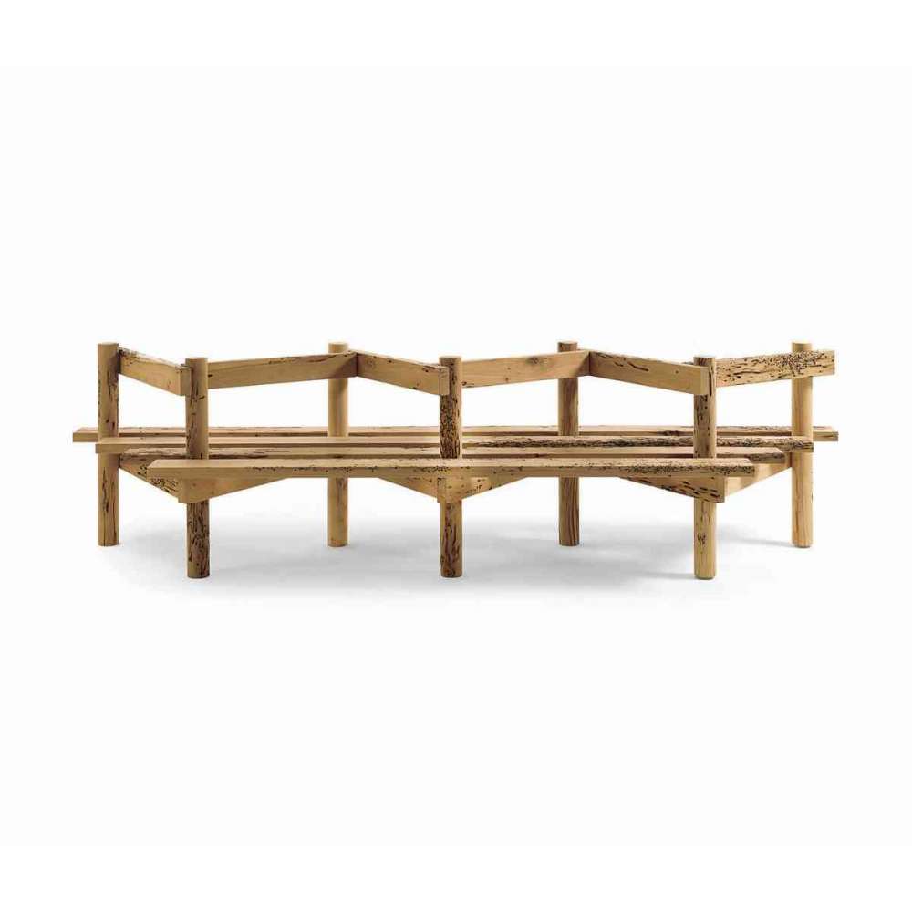 Ławka zaprojektowana przez Arch. De Lucchi i wykonane z drewna Briccola, pali dębowych w lagunie weneckiej.