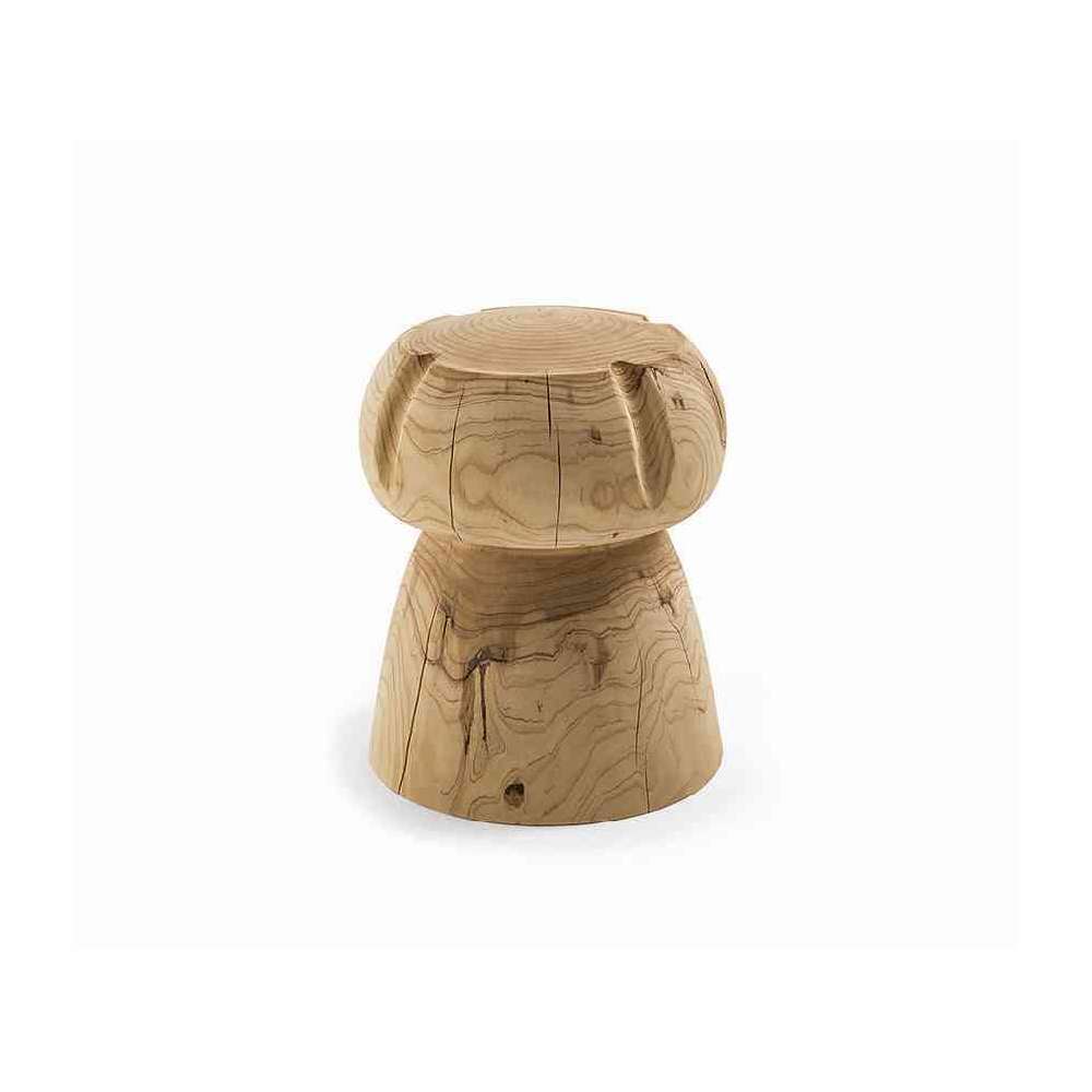 Stołek wykonany z pojedynczego bloku pachnącego cedru, który jest reprezentacją dużego korka używanego w butelkach szampana.