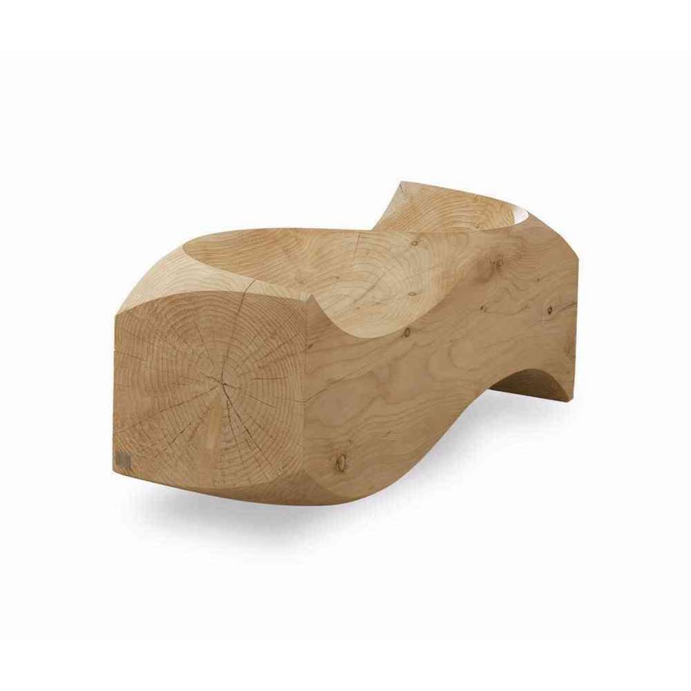 Ławka wykonana z jednego bloku pachnącego cedru. Charakteryzuje się oryginalnym i ergonomicznym kształtem, który umożliwia bezpośredni kontakt.