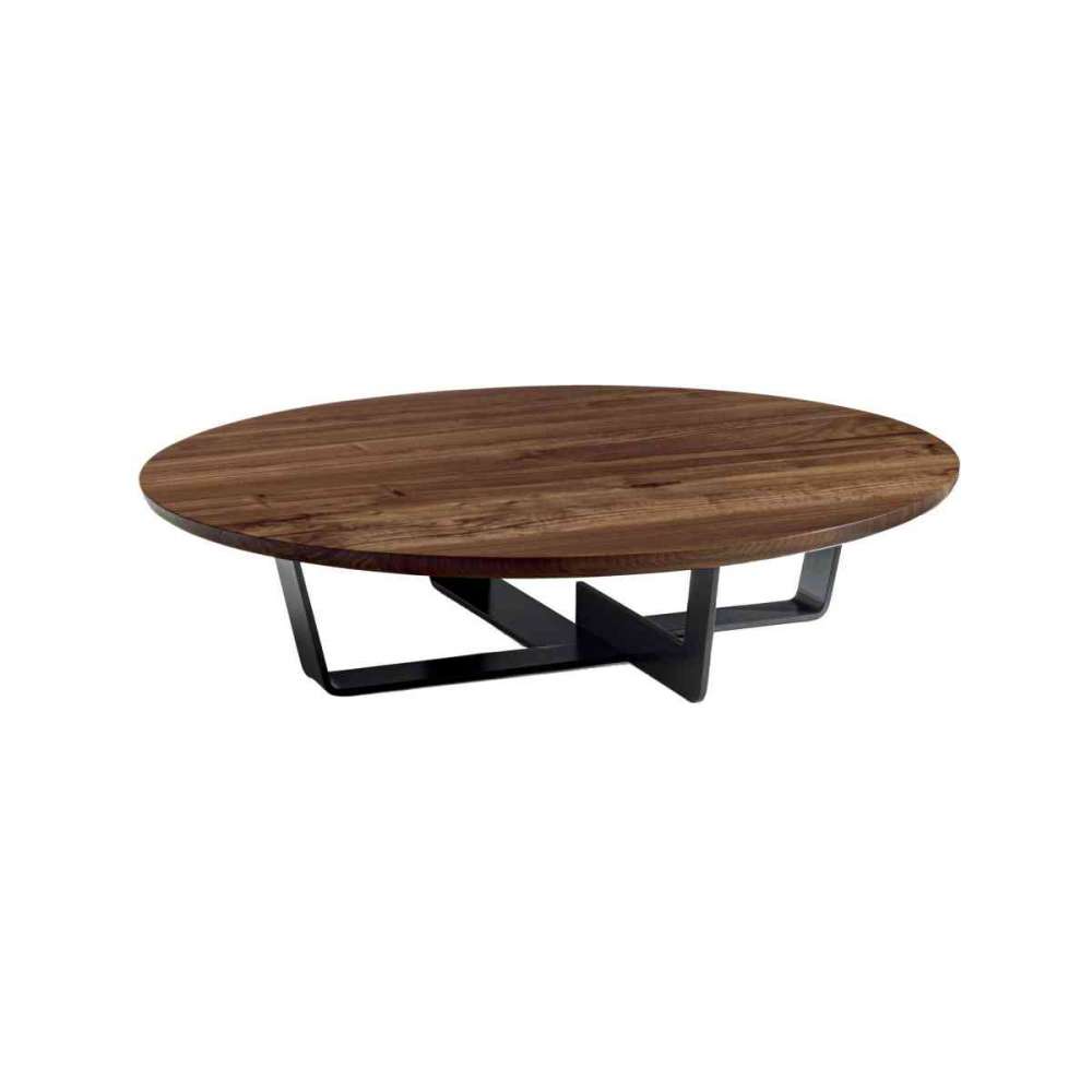 Okrągły stolik z blatem z litego drewna z klejonych listew, połączony z żelazną podstawą. Dostępne w różnych rozmiarach, z możliwością układania jeden na drugim. wys. 32 cm
