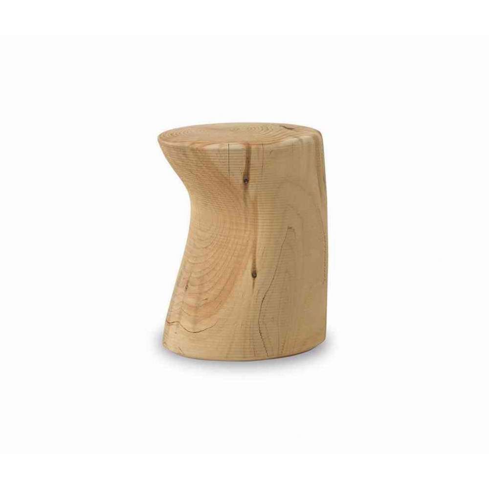 Stołek wykonany z pojedynczego bloku pachnącego cedru, z bocznym wycięciem.