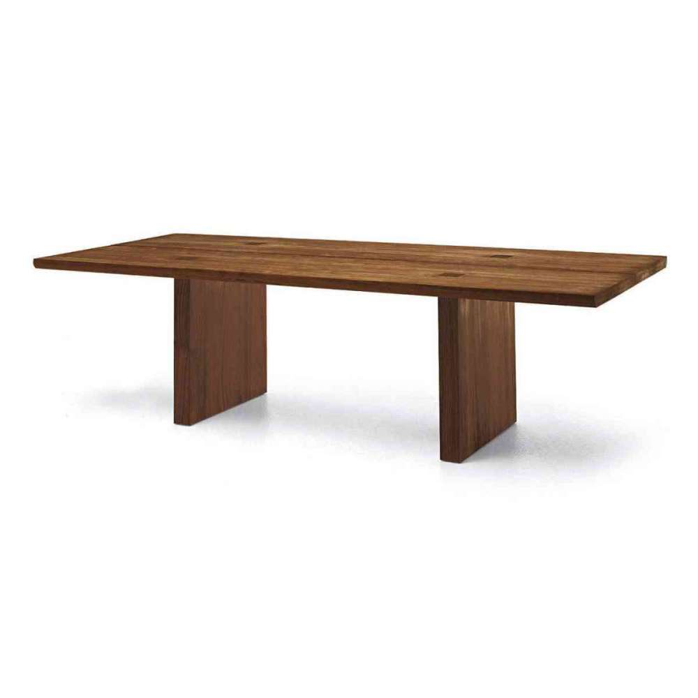 Stół wykonany w całości z litego drewna w listwach klejonych, z centralną szczeliną i widocznymi nogami na blacie. Dostępne z górnym profilem zaokrąglonym lub prostym. P.100 x wys.75|dł.260 x str.100 x wys.75|dł.280 x str.100 x wys.75|dł.300 x str.100 x wys.75