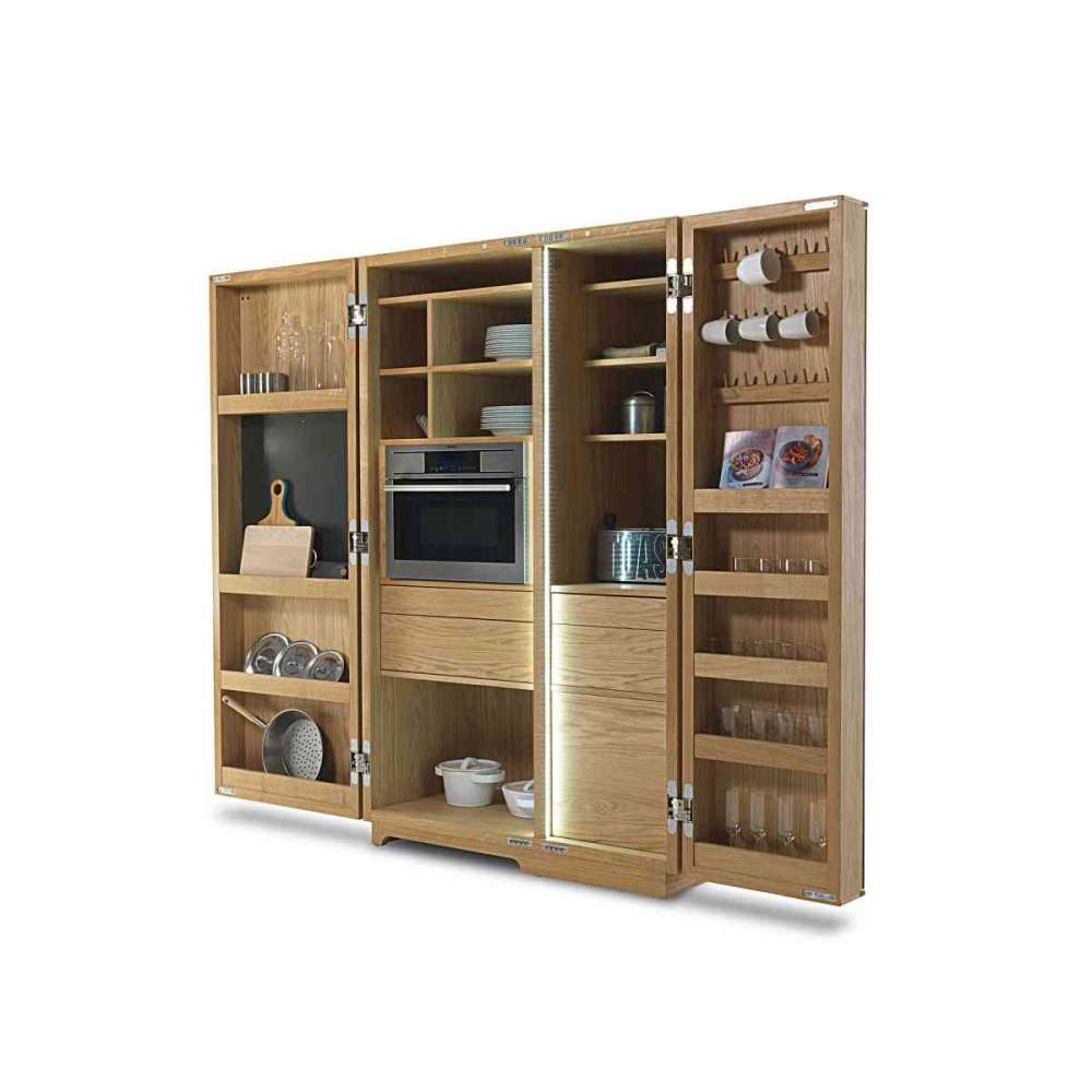 Wielofunkcyjna szafka z płyty stolarskiej i litego drewna, z podwójnymi drzwiami otwieranymi do 180°. Zaprojektowana jako zabudowa kuchenna, wewnątrz znajdują się pojemniki o różnych wymiarach, z możliwością wstawienia drobnego sprzętu AGD (wersja Jumbo). Wewnętrzna konstrukcja drzwi pozwala na uporządkowanie szklanek, naczyń i akcesoriów. Wnętrze jest oświetlone paskami LED wzdłuż wewnętrznej strony, aktywowanymi automatycznie przez czujniki po otwarciu drzwi.