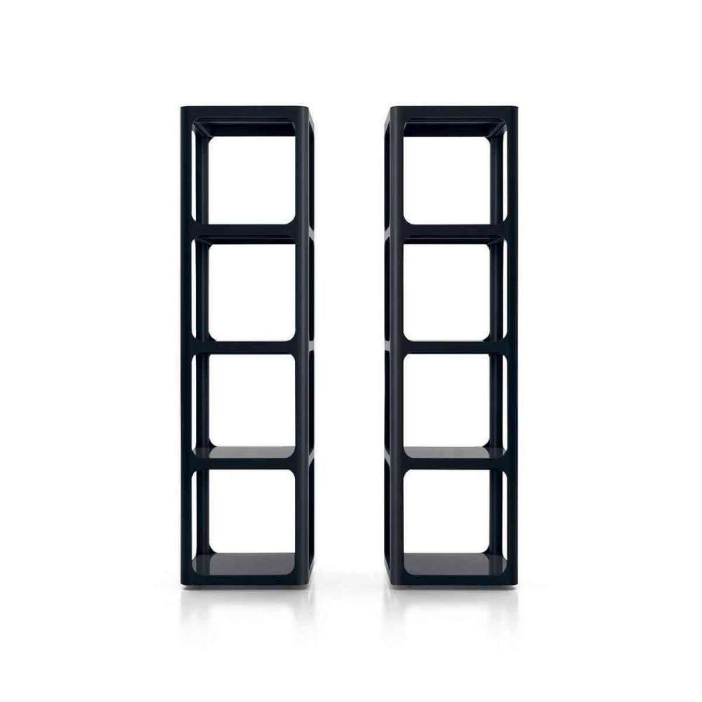 Regał o minimalnej estetyce: podstawowe linie charakteryzujące się okrągłymi połączeniami między konstrukcją a półkami oraz ekskluzywnymi niewidocznymi połączeniami. Dostępny w wielu wersjach wymiarowych system daje możliwość łączenia konstrukcji aluminiowej z blatami szklanymi, z kontrastowymi wykończeniami lub jednolitym kolorem w przypadku wersji lakierowanych.