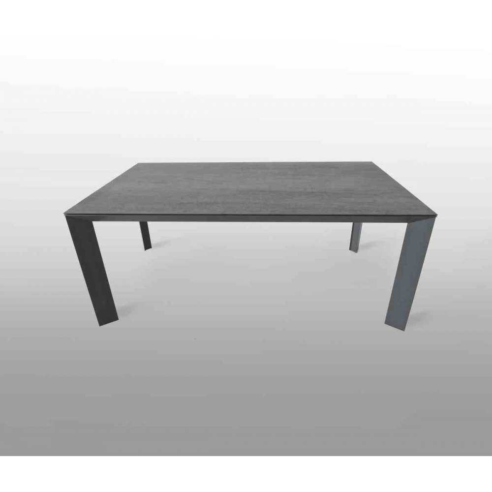 System stałych lub rozkładanych stołów z ramą i nogami z matowego aluminium malowanego w kolorach: białym, gołębim, szarym, antracytowym i blatem z ekstra przezroczystego szkła hartowanego, błyszczącego lub matowego, malowanego z tyłu w tych samych kolorach co rama lub w ceramiczny. Standardowe wykończenia: blat szklany w kolorach: biały, gołębi szary, szary, antracyt (mat lub połysk) na stelażu lakierowanym matowo w tych samych kolorach. Wykończenia na zamówienie: ceramika w kolorach: antracyt lub szary kamień savoy, glossy noir wish, glossy gold calacatta lub statuetka white gr.5,6 mm na ramie lakierowanej matowo w 4 kolorach: WERSJA STAŁA I ROZSUWANA W 80