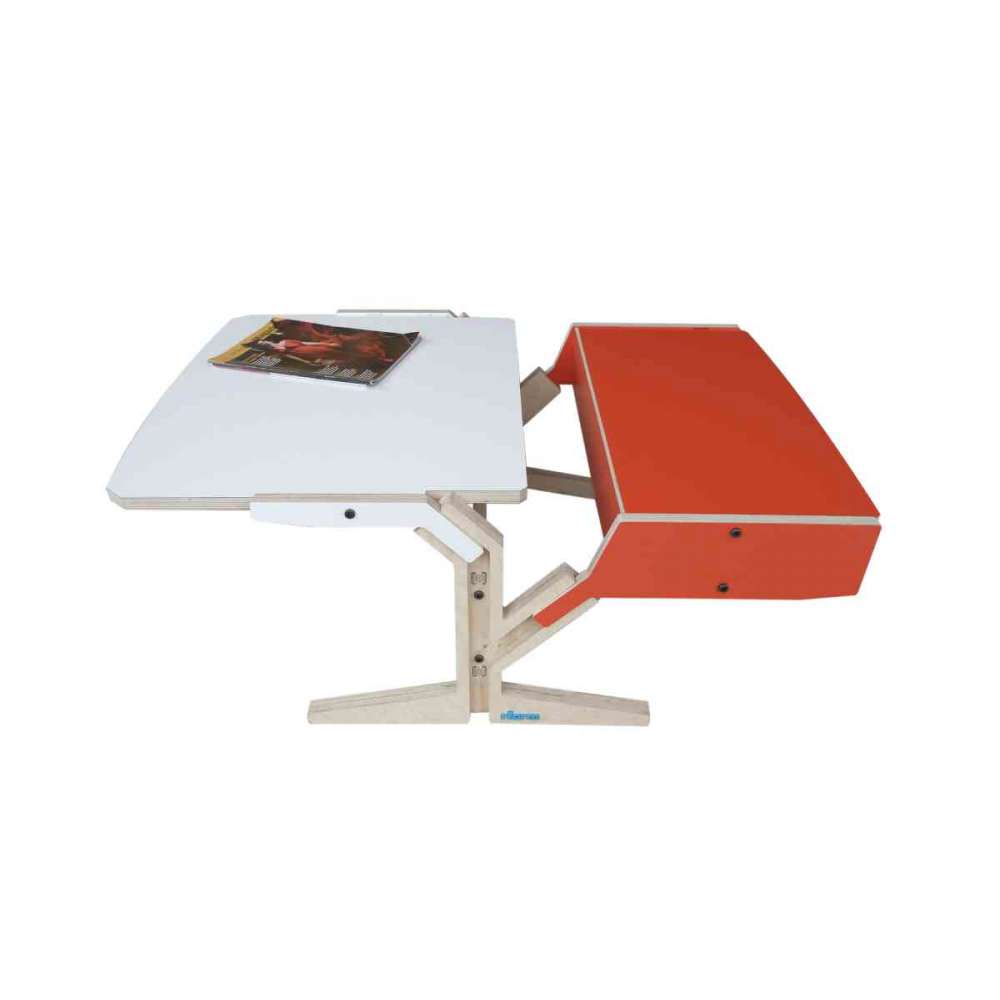 Tablety i pudełko do przechowywania są wykonane z bardzo wytrzymałej sklejki brzozowej z górną warstwą laminatu wysokociśnieniowego, dostępne w różnych modnych kolorach: Śnieżka, Atramentowa czerń, Irysowy niebieski, Kamienny niebieski szary, Foxy Pomarańczowy, Kanarkowy żółty, Palmowy zielony, Wiśniowy Czerwony, zakurzony szary i niebieski motyl. Nogi również wykonane są ze sklejki brzozowej, ale zachowane są w "naturalności" (są piaskowane i olejowane). Połączenie ciepłych tonacji naturalnego drewna i plam koloru zapewnia świetny kontrast. stolik kawowy tablet poziomy i tablet pionowy: dł.: 65 cm szer.: 86 cm wys.: 41 cm / waga produktu: 18 kg Waga produktu: 19 kg