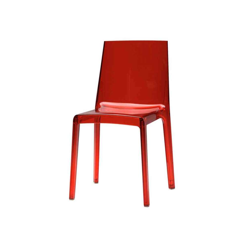 Eleganckie krzesło do sztaplowania, lekkie i niezwykle wygodne, z solidną ramą, dzięki czemu idealnie nadaje się zarówno do domu, jak i do pomieszczeń ogólnodostępnych. Jednoczęściowy przedmiot z poliwęglanu, który jest dostępny w przezroczystym kryształku, czerwonym, czarnym, niebieskim, bursztynowym lub jednolitym białym, czerwonym, czarnym.