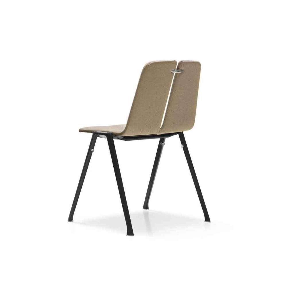 Wysoka możliwość integracji dla wersji tapicerowanej Bridge. Oryginalny profil konstrukcji na 4 nogach (czarny lub biały lakierowany lub chromowany) jest dostępny z podłokietnikami iz biurkiem lub bez, aby uwydatnić jego cechy i uczynić go odpowiednim do dynamicznych miejsc spotkań i pracy.