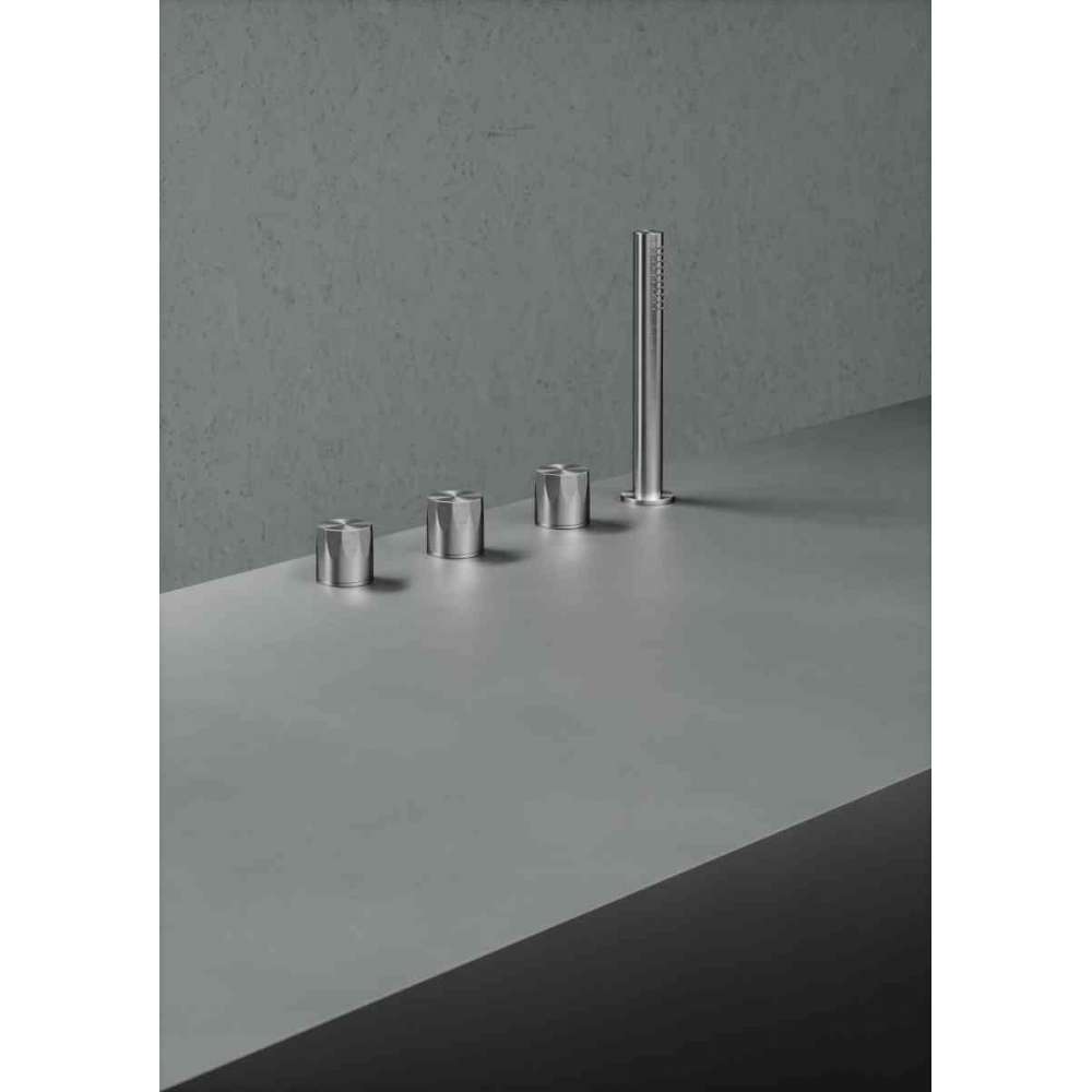 Quadrodesign Hb | Stainless steel Bath rim set. Three hole ri and hydroprogressive mixer with handshower kit
