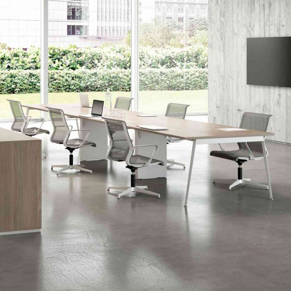 Dynamiczne, innowacyjne stanowisko pracy. Ta kolekcja wyróżnia się ukośnymi nogami, cechą konstrukcyjną, która sprawia, że pasuje do każdego nowoczesnego biura.