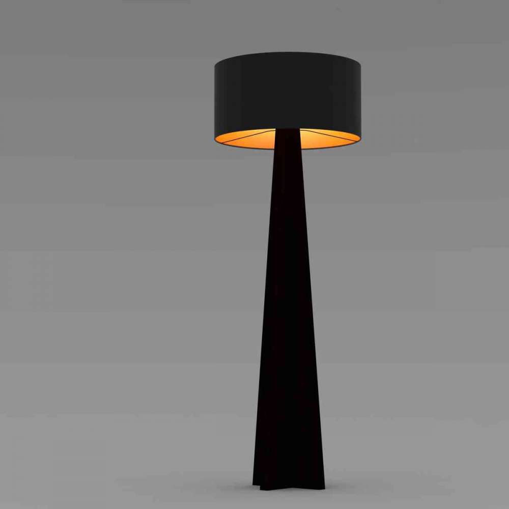 Q.san to seria dekoracyjnych lamp podłogowych i stołowych z domyślnym połączeniem czarnego dębu, czarnej i złotej tkaniny.