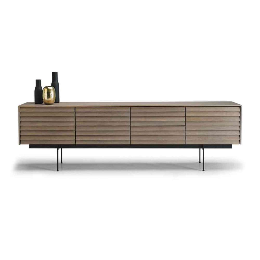 Kolekcja komód i szafek RTV z ekskluzywnym designem na froncie składającym się z poziomych belek skrywających kompozycję oprócz pełnienia funkcji uchwytów do drzwi i szuflad. elementy mocujące.