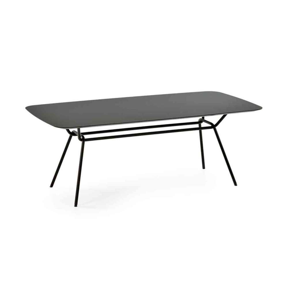 Stoły ogrodowe Strain są dodatkiem do kolekcji Strain z typową podstawą Strain. Przeplatające się stalowe rurki stanowią elegancką podstawę cienkiego blatu wykonanego z płyty MDF z lakierowanymi krawędziami i wykończeniem Fenix lub kompaktowego HPL do użytku na zewnątrz. Stół występuje w różnych rozmiarach i pasuje do różnych typów krzeseł.