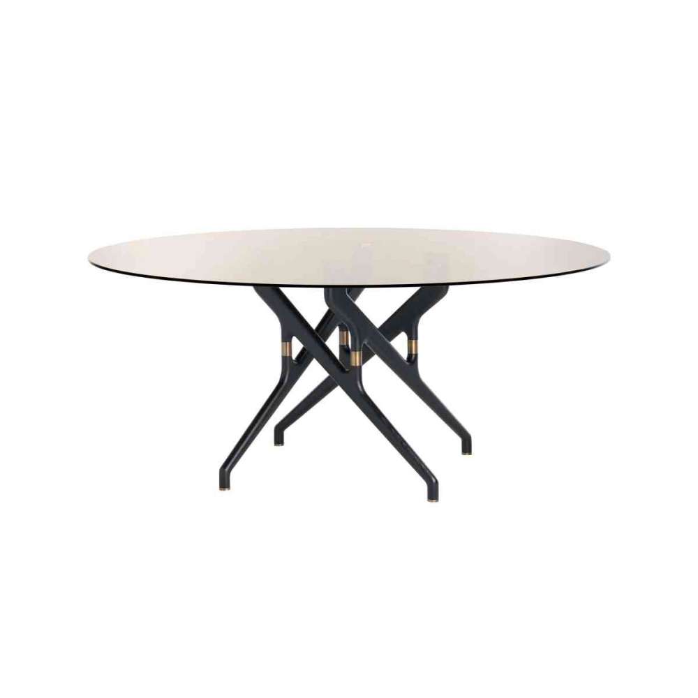 Stół Torso z okrągłym blatem Ø 160 - Ø 180, z drewna jesionowego, orzecha canaletto lub szkła, charakteryzuje się centralną podstawą z 4 nogami, z litego drewna jesionowego lub orzecha canaletto, z metalowymi detalami nóg i pierścieni, które połącz nogi stołu.