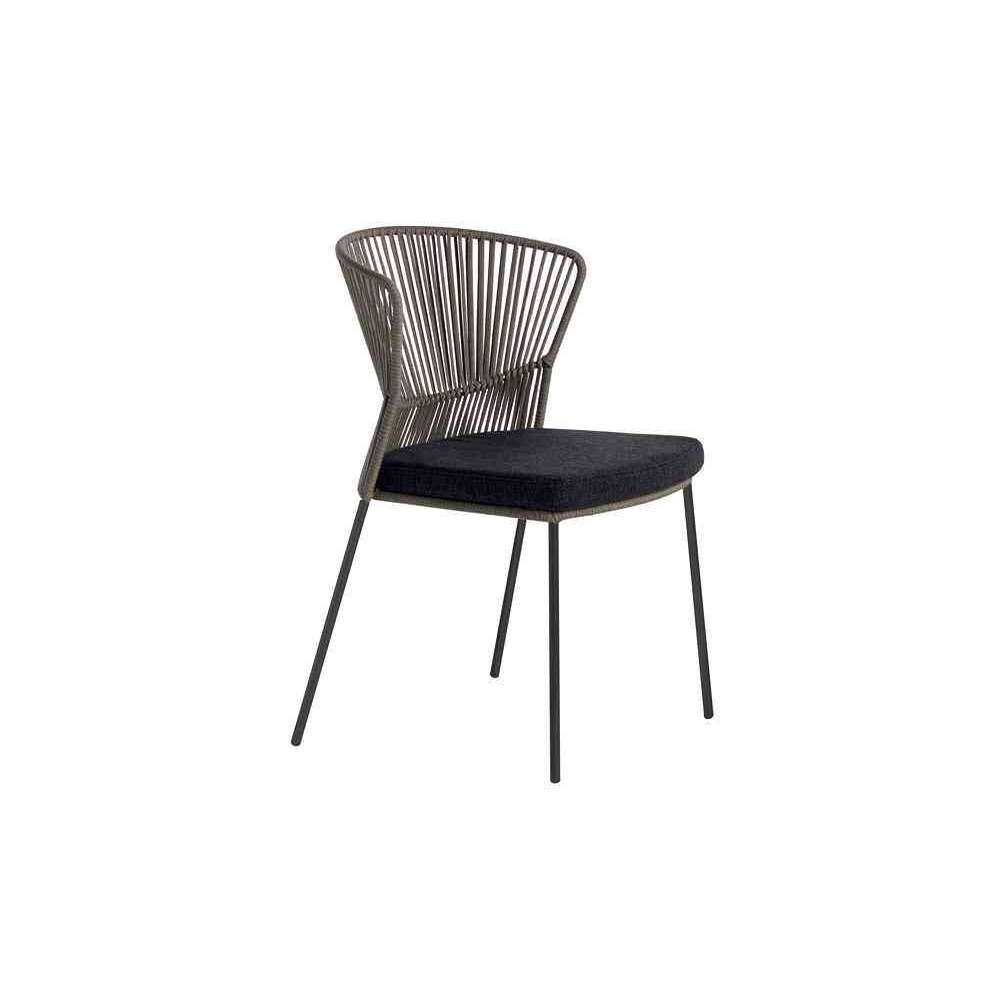 ostateczna podszewka w tkaninach outdoorowych zgodnie z kolekcją. Nogi z malowanej rury ze stali nierdzewnej AISI 316. Możliwość sztaplowania do 4 krzeseł z poduszkami i do 6 bez poduszek.