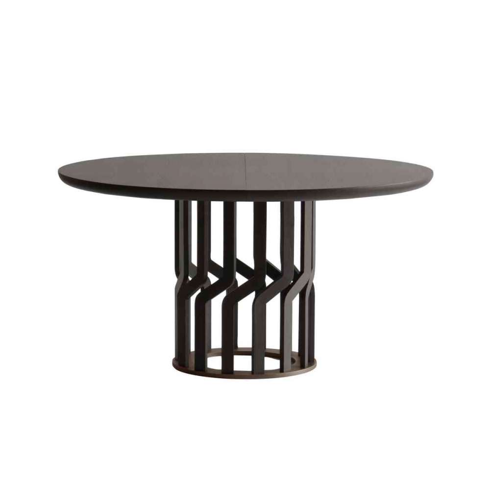 Stół z okrągłym blatem dostępny w wersji stałej Ø160 z podstawą z litego drewna jesionowego i blatem w
