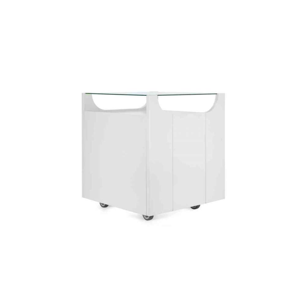 Wózek z lakierowaną konstrukcją drewnianą i płytą ze szkła hartowanego. Jego design, typowy dla lat sześćdziesiątych, czyni go ikoną, niezbędnym elementem, który przetrwa przemijające mody. Może służyć jako wózek w jadalni, czy w sypialni jako pojemny stolik nocny, dzięki kompaktowej formie z 4 składanymi otworami.