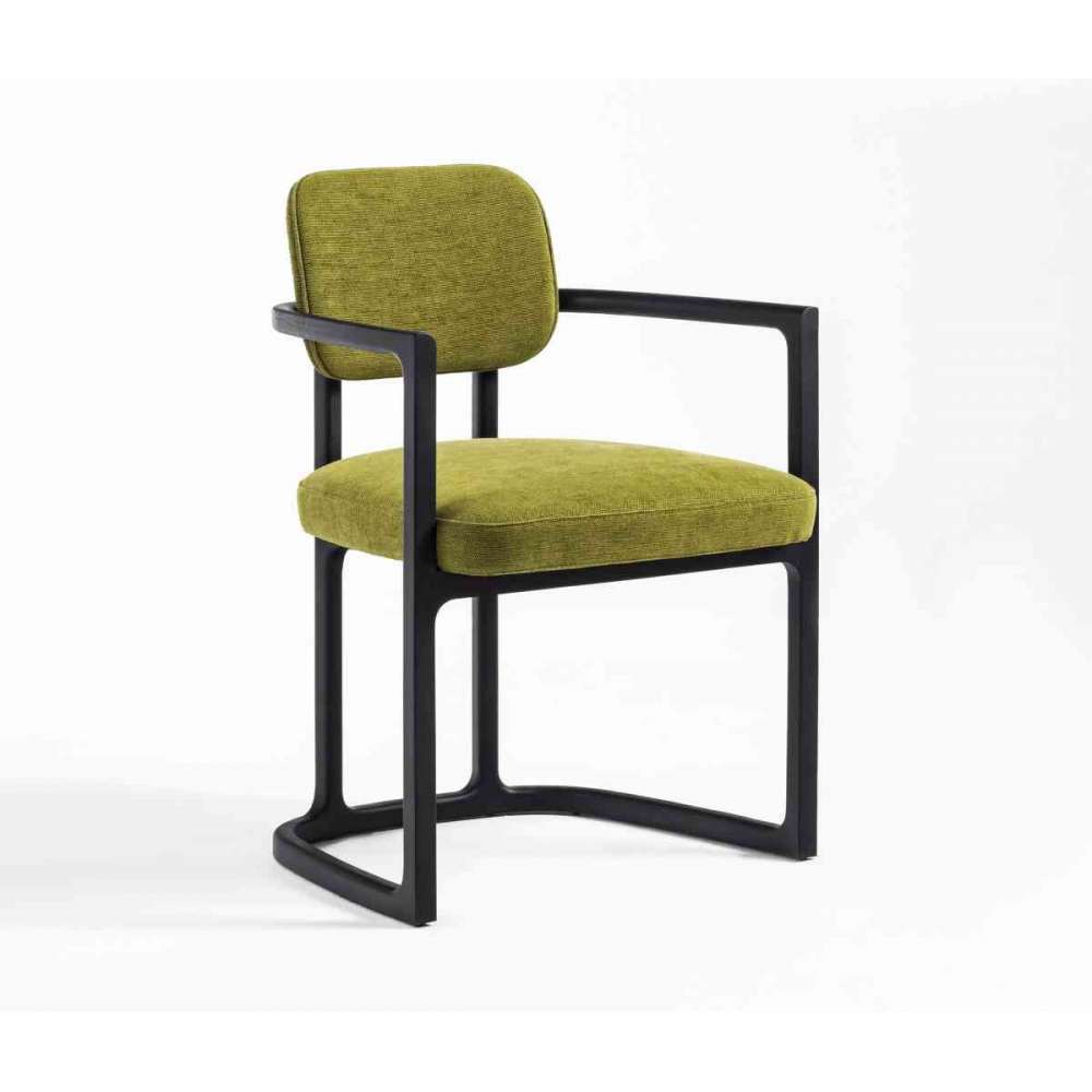 Fotel z ramą z litego jesionu i pokryciem z tkanin z kolekcji.