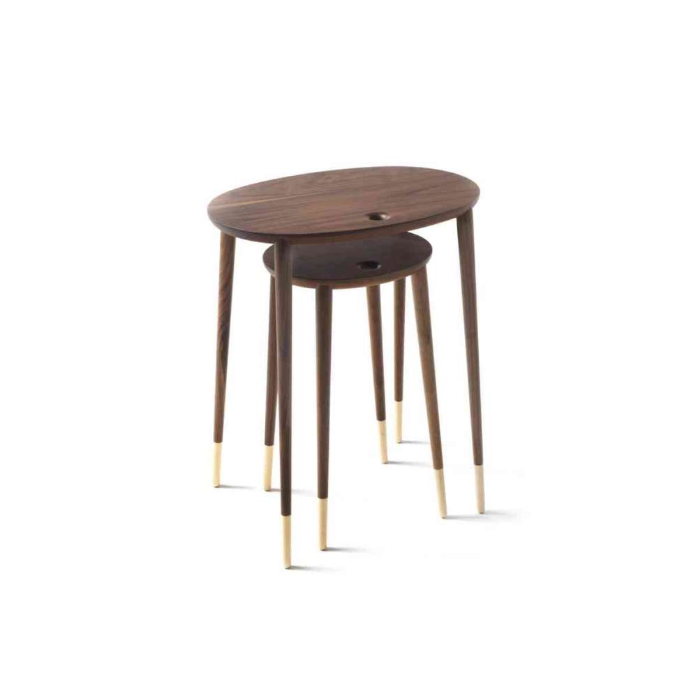 Gniazdo stolików bocznych z litego orzecha canaletta lub palisandru z końcówkami z naturalnego klonu.