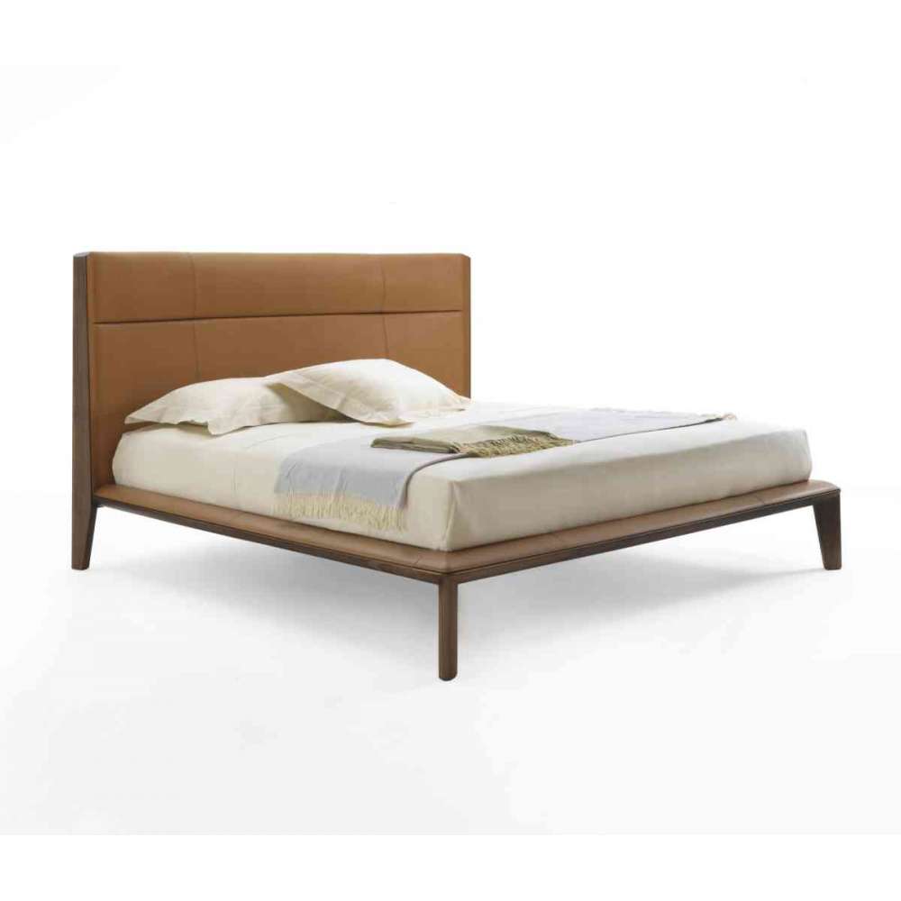 Łóżko z ramą z litego orzecha canaletta i ramą podstawy z listew ze sklejki topolowej pokrytej skórą cuoio lub cuoietto. Wezgłowie łóżka pokryte skórą cuoio lub cuoietto z ramą nośną ze sklejki topolowej wyściełanej formowanym poliuretanem. W zestawie rama łóżka z metalowych rurek i listew z litego drewna bukowego.