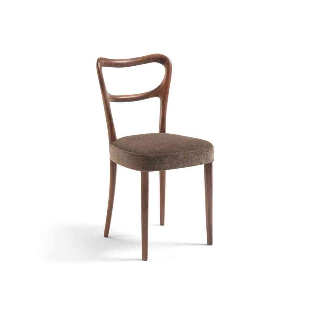 Krzesło z litego orzecha canaletta i siedzisko pokryte tkaninami z kolekcji.