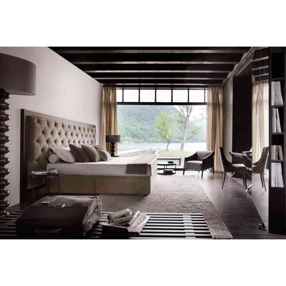 Wezgłowie łóżka Capitonné, tapicerowane tkaninami z kolekcji, z drewnianą ramą.