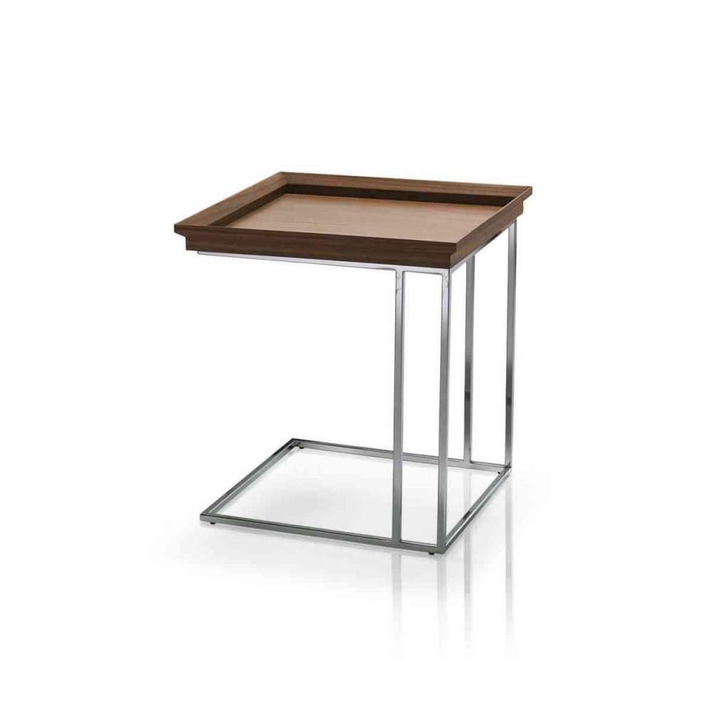 Stolik boczny z wyjmowaną tacą z orzecha canaletta i metalową ramą.
