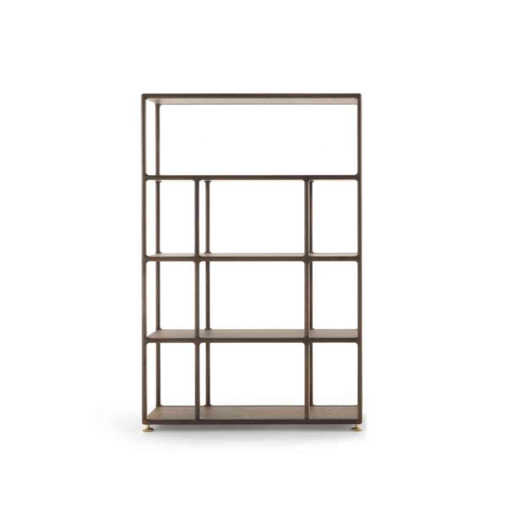 Regał z ramą z litego orzecha canaletta. Rama jest dostępna tylko w wykończeniu orzecha canaletta, natomiast półki mogą być bejcowane lub lakierowane w innym wykończeniu niż rama.