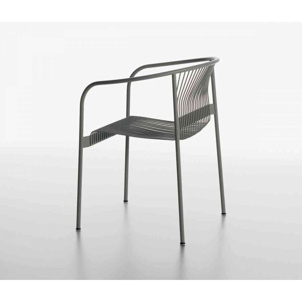Metalowa rama z rur stalowych, siedzisko i oparcie z drutu metalowego malowanego proszkowo w kolorach ocean blue, green mech, oliwkowa zieleń, beton szary, biały, czarny. Zdejmowana, samoocieplająca się, integralna poduszka poliuretanowa w kolorach stelaża (oprócz białego). Plastikowe ślizgacze. Zastosowanie wewnątrz i na zewnątrz.