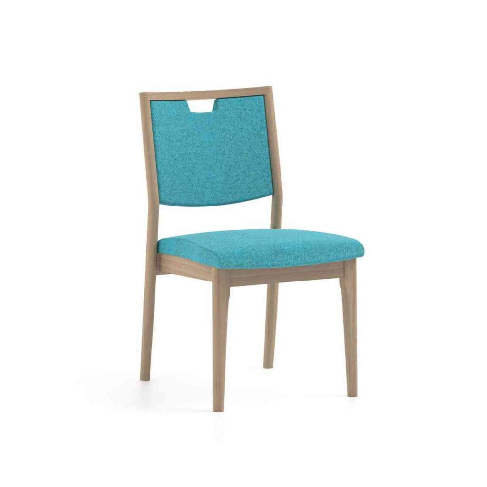 Krzesło. Wyściełane siedzisko i oparcie, uchwyt do przenoszenia na oparciu. Możliwość układania w stos. Stała pozycja. Buk