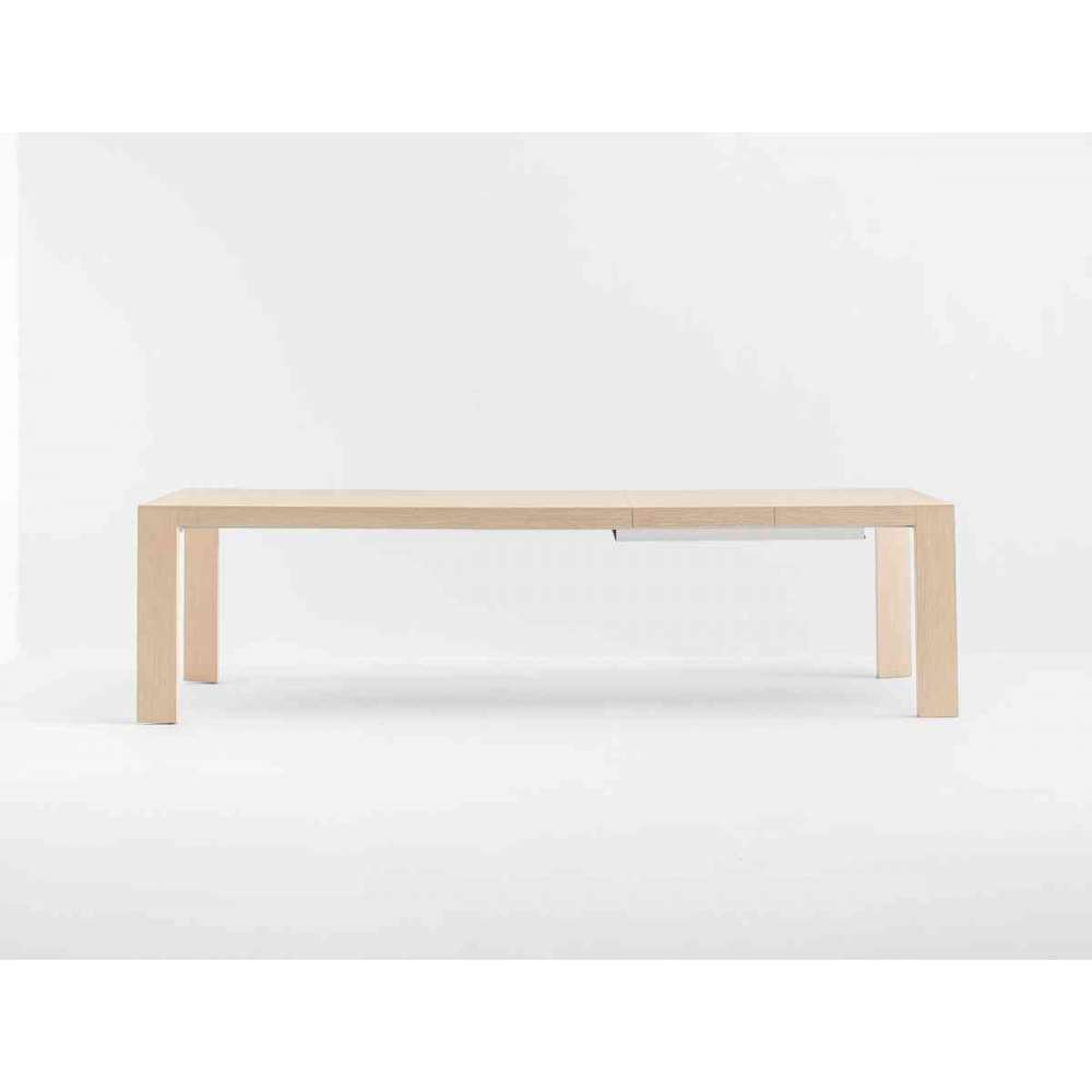Stół rozkładany, fornirowany dębem, bejcowany w kolorze wenge lub fornirowany orzechem włoskim. Grube i zwężane nogi nadają stołowi zarówno stabilności, jak i lekkości. Aluminiowe prowadnice szynowe ślizgowe, dwa skrzydła pozwalają na łatwe wysuwanie stołu.