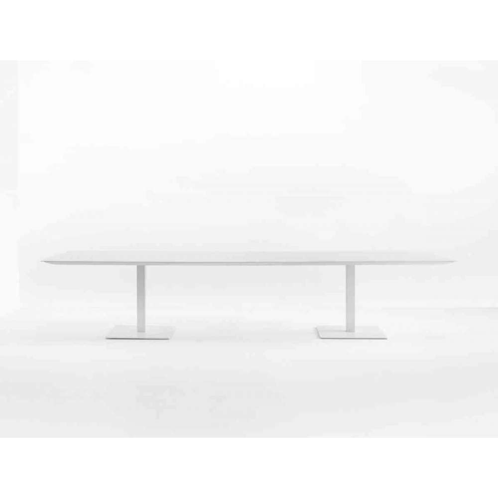 Plano 2 to kolekcja stołów do biura o smukłej i esencjonalnej estetyce. Ultracienki blat z litego laminatu leży na wytłaczanej aluminiowej ramie przymocowanej do dwóch kwadratowych podstaw. Dostępne w trzech różnych rozmiarach z systemem zarządzania kablami i bez. Dwie kwadratowe podstawy mogą być wykonane ze szczotkowanej stali nierdzewnej lub malowane proszkowo na biało.