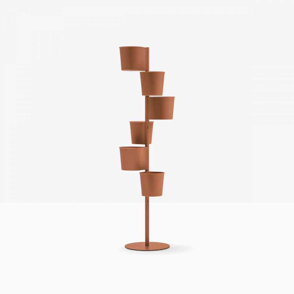 Uchwyt do doniczek składa się z centralnej stalowej nóżki, na której zawieszone są doniczki z polipropylenu