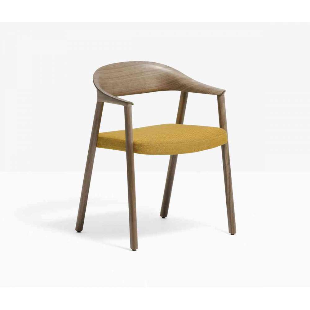 Héra to fotel dostępny w jesionie lub orzechu amerykańskim, który ucieleśnia koncepcję lekkości, łącząc ją z wygodą. Oparcie z trójwymiarowej giętej sklejki o grubości 6 mm ma niezwykle elegancki i ergonomiczny kształt, a tapicerowane siedzisko pianką poliuretanową wsparte elastycznymi paskami zapewnia dużą przytulność. Prostokątne nogi z zaokrągloną krawędzią odzwierciedlają dbałość o szczegóły, co sprawia, że ten produkt szczególnie nadaje się do użytku w niektórych wiodących hotelach i restauracjach na świecie. Siedzisko tapicerowane tkaniną, skórą lub imitacją skóry.