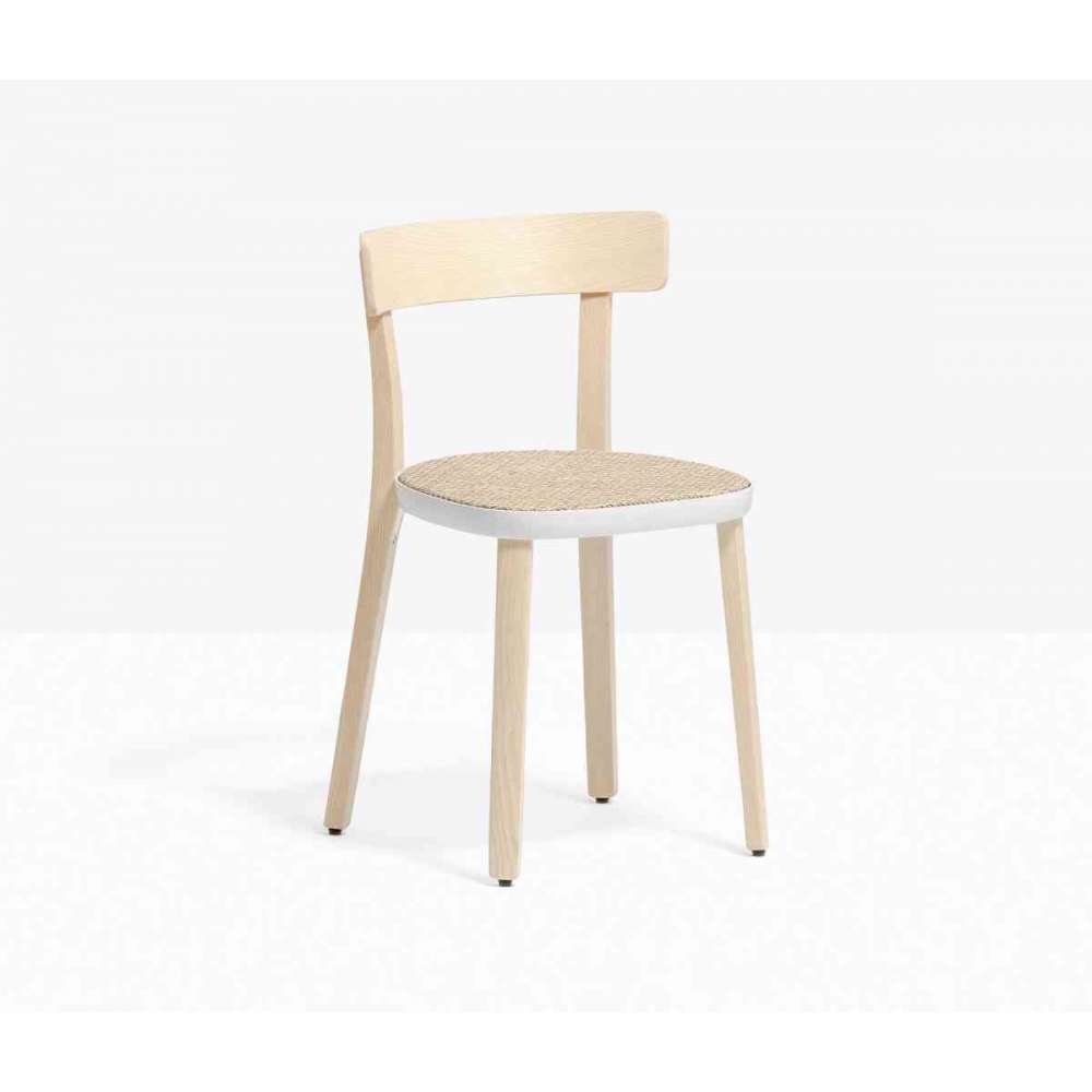 Lekki, wytrzymały pierścień z odlewanego ciśnieniowo aluminium, staje się konstrukcyjnym i wyróżniającym elementem, który umożliwia łatwy demontaż krzesła w celu recyklingu lub wymiany jego elementów. Rama z litego jesionu ściśle przylega do aluminiowego pierścienia podtrzymującego siedzisko z naturalnej trzciny, co gwarantuje wizualną lekkość i maksymalną trwałość dzięki nylonowej przędzy wplecionej w wiklinowy materiał. Oparcie z giętej sklejki zapewnia pełen komfort i przytulność.