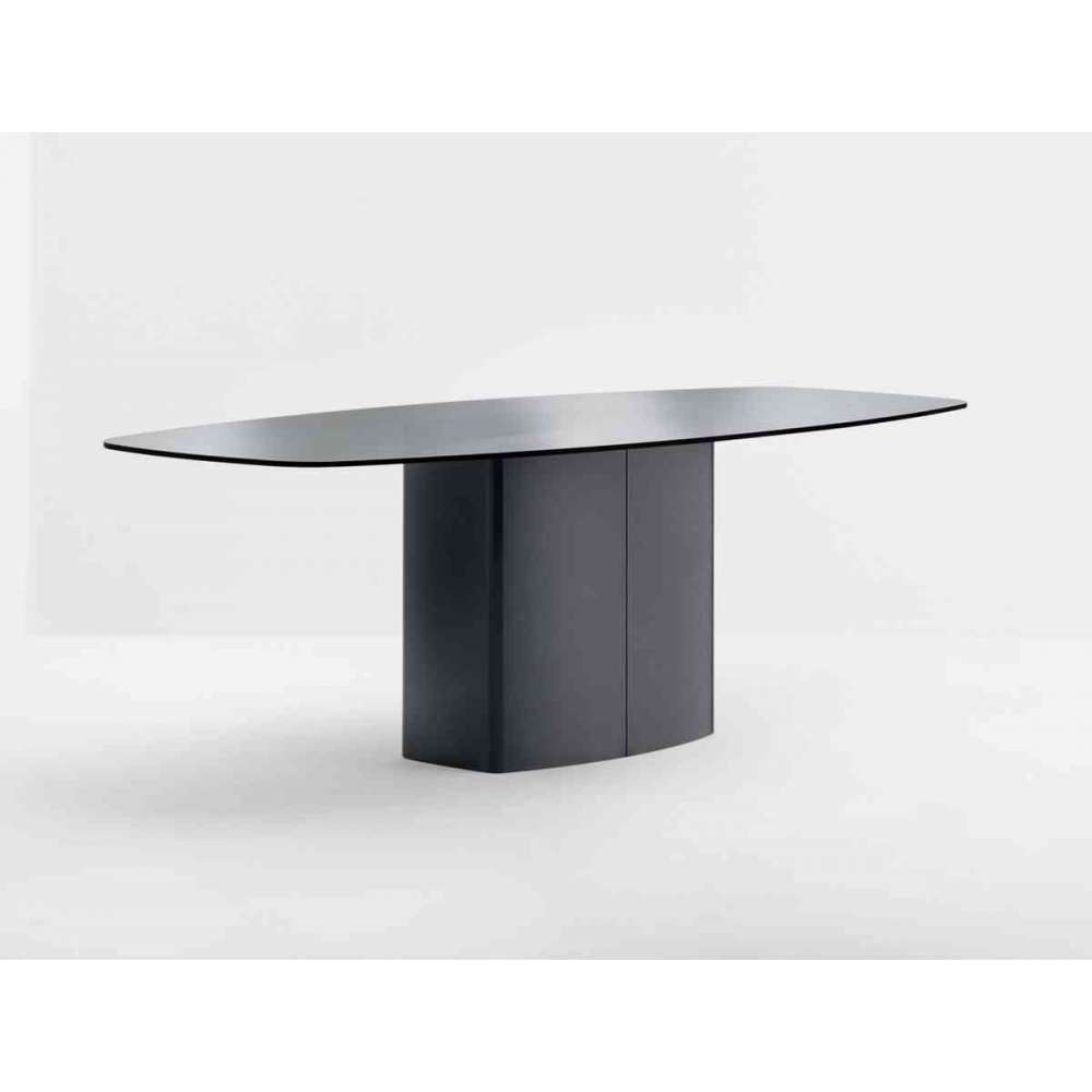 Particolare il disegno del tavolo AERO, la base in acciaio laccato nasce dalla geometria del rettangolo che muta diventando simile ad un'ellisse. Maestoso e raffinato ha base in acciaio laccato bianco e top in mdf laccato bianco lucido.