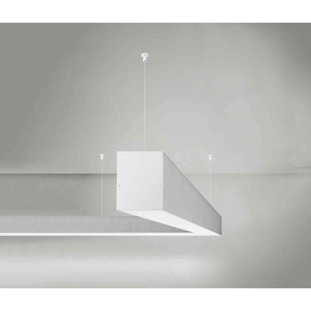 System oświetleniowy w wersji podtynkowej lub zwieszanej/ścienno-sufitowej wykonany z ekstrudowanego aluminium barwionego na biało oraz łączników i łączników z blachy ocynkowanej. Przesłona klosza w wersji z poliwęglanu opalowego lub mikropryzmatycznego. Emisja światła bezpośredniego zapewniona przez moduł LED o mocy 17W na mb i strumieniu świetlnym 2150lm na mb. Alternatywnie możliwość wstawienia elastycznej taśmy LED o mocy od 14,4W do 25W na mb i strumieniu świetlnym od 1080lm do 1950lm na mb. Możliwy ściemniacz 1-10V DALI/PUSH DIM. Specjalny system mocowania z regulowanymi mikronakrętkami sprężynowymi, który pozwala na różne wysokości sufitu podwieszanego. System do wbudowania zawiera jednorazową matową osłonę ułatwiającą czynności montażowe (wyrównywanie, szpachlowanie, malowanie), którą po tych czynnościach należy zastąpić razem z kloszem. Dostępne wstępnie zmontowane akcesoria do tworzenia kątów. Dostępna wersja reflektora obrotowego z zasilaczem. Idealny do obiektów mieszkalnych, komercyjnych i hotelarskich.