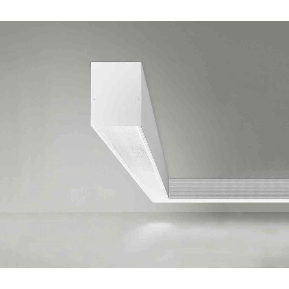 System oświetleniowy w wersji podtynkowej lub zwieszanej/ścienno-sufitowej wykonany z ekstrudowanego aluminium barwionego na biało oraz łączników i łączników z blachy ocynkowanej. Przesłona klosza w wersji z poliwęglanu opalowego lub mikropryzmatycznego. Emisja światła bezpośredniego zapewniona przez moduł LED o mocy 17W na mb i strumieniu świetlnym 2150lm na mb. Alternatywnie możliwość wstawienia elastycznej taśmy LED o mocy od 14,4W do 25W na mb i strumieniu świetlnym od 1080lm do 1950lm na mb. Możliwy ściemniacz 1-10V DALI/PUSH DIM. Specjalny system mocowania z regulowanymi mikronakrętkami sprężynowymi, który pozwala na różne wysokości sufitu podwieszanego. System do wbudowania zawiera jednorazową matową osłonę ułatwiającą czynności montażowe (wyrównywanie, szpachlowanie, malowanie), którą po tych czynnościach należy zastąpić razem z kloszem. Dostępne wstępnie zmontowane akcesoria do tworzenia kątów. Dostępna wersja reflektora obrotowego z zasilaczem. Idealny do obiektów mieszkalnych, komercyjnych i hotelarskich.